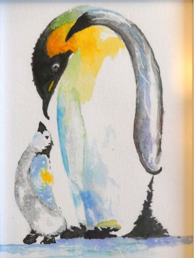 Penguins - Original Watercolour Print Framed 7 1/2" x 6"