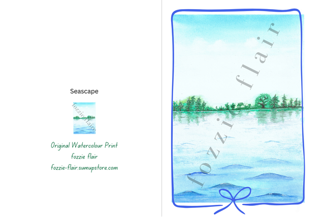 Print of an original watercolour painting, depicting a seascape, printed on 250gsm matt ivory card. Blank inside.